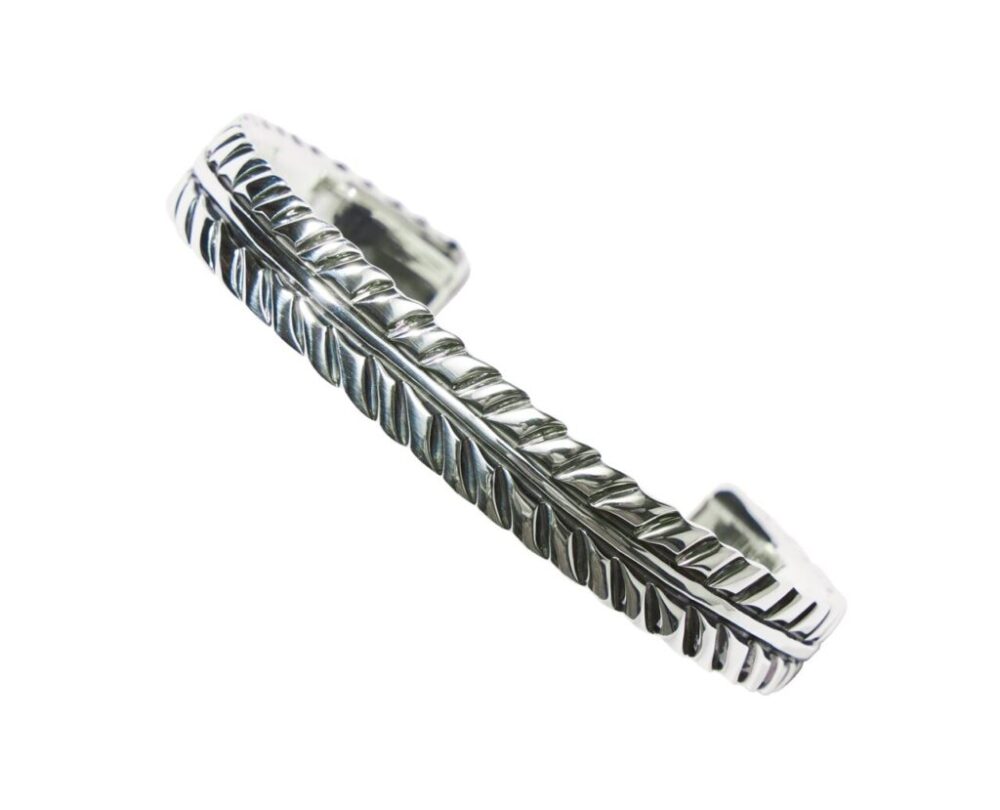 僕はすでに「市松」のリングをひとつ持っているのですが、あとすこしで30歳になることもあって自分へのご褒美に新作バングルを購入しました。なんとなくインディアンジュエリーが気になっていたなかで、フェザーモチーフっぽさがありつつも、でもよくあるものとは全然違う風格のあるデザインが好み。