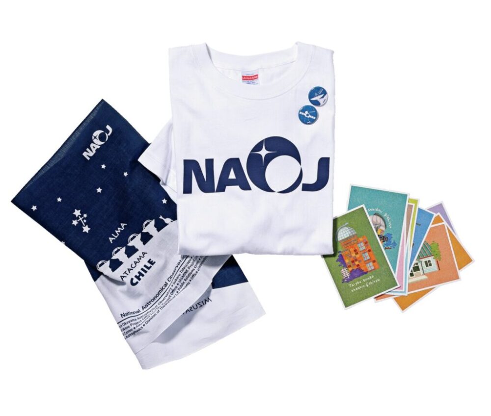 ジャケットの中に着たら程よい抜け感を出してくれそうなプリントTシャツなど普段使いできそうなアイテムが盛りだくさん! Tシャツ1650円、缶バッジ各330円、手ぬぐい1430円、ポストカード[10枚セット]770円(すべて東京大学 生協天文台店TEL0422-31-8391)