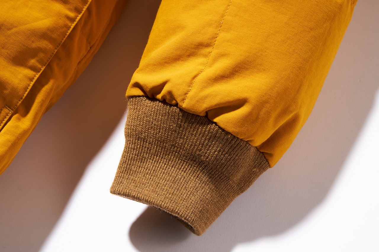 「エディー・バウアー」のダウンの特徴でもある袖リブ。袖からの風を防ぐだけでかなり保温性が上がる。