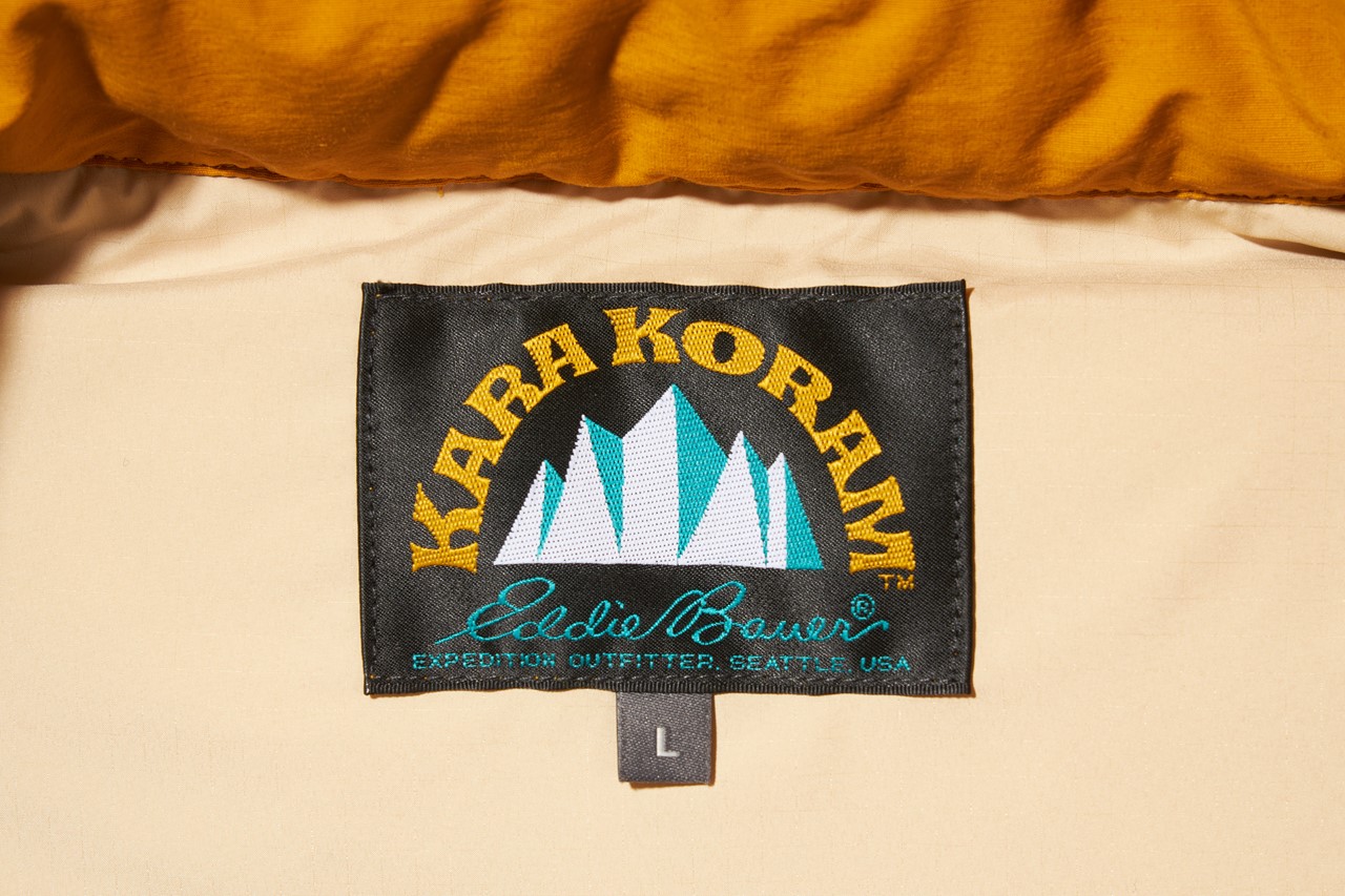 お願いをしたのはブランドの名作[カラコラム]の別注だ。ブランドのアイコンである[カラコラム]が生まれたのは1953年のこと、世界第2位の標高を誇る「K2」の初登頂を目指すアメリカの登山チームが「エディー・バウアー」に装備の依頼をし製作されたダウンジャケット。格子状のダウンパックと前立てのボタン仕様が特徴的なアイテムだ。12月に発売をした2nd 2/3月合併号の制作の際、アメリカ取材をきっかけに貴重な資料を大量に入手。