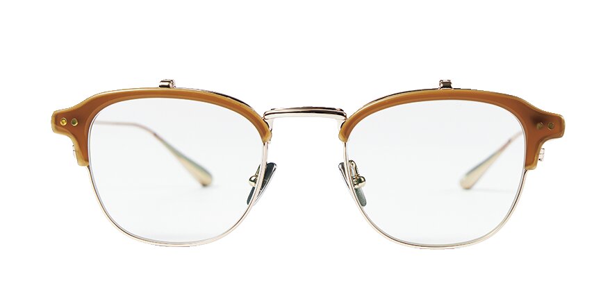 着用写真でもわかるように、跳ね上げ機構の存在は悪目立ちすることなく、普段使いになんら問題のない細さとデザイン性を兼ね備えている。クラウンパントやブロウタイプなど、クラシックで普遍的なラインナップも、トラッド好きにはたまらないポイント。お洒落にこだわりたい人のための老眼鏡なのだ。