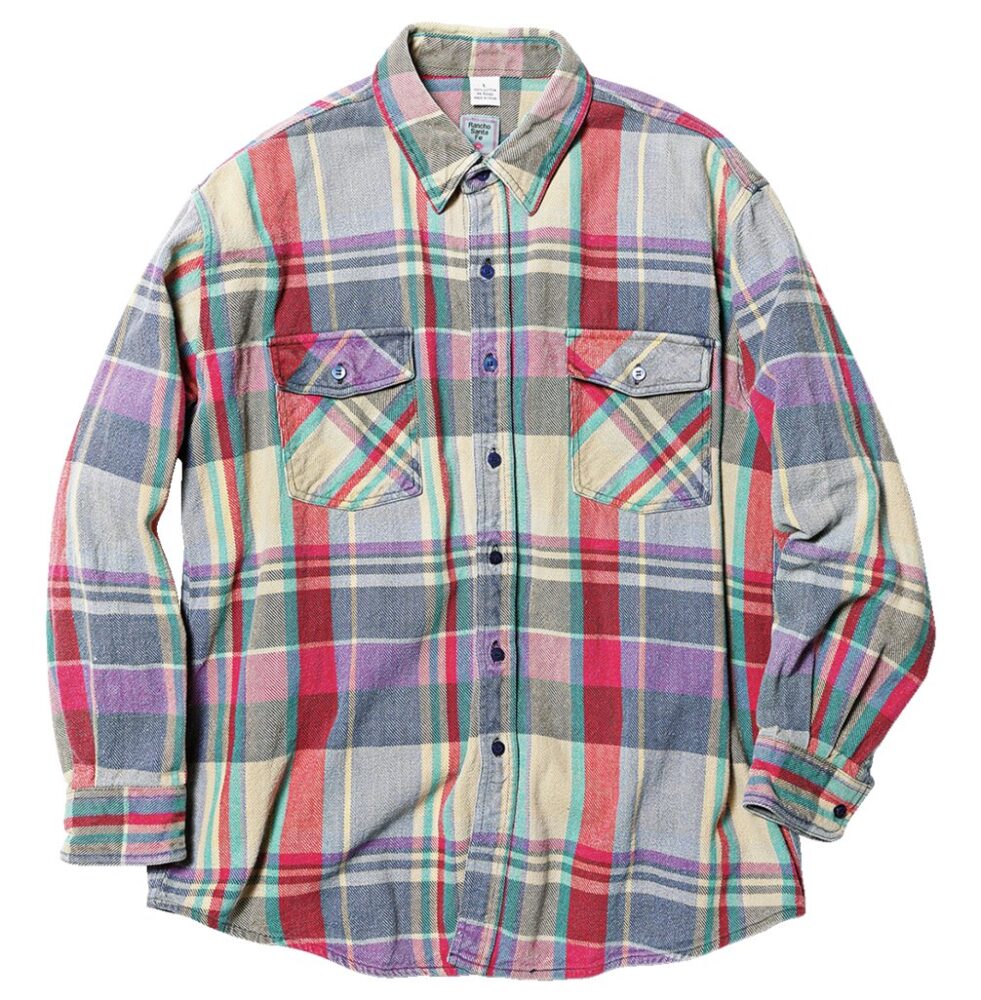 マイナーブランドだが、ヘビーな生地感や耐久性の高い貝調ボタンなどの作りの良さが魅力の90年代製。ポップな配色のチェック柄もポイント。8,800円