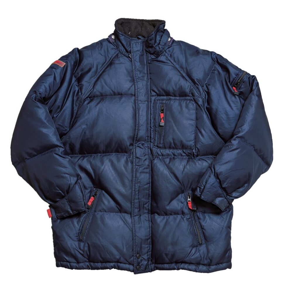 キッズ企画のいわゆるオールドギャップ。赤のジップや左袖につくゴムのオリジナルタグがシンプルなデザインのアクセントに。9,900円
