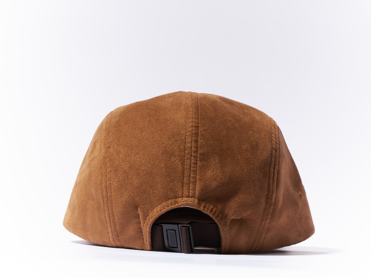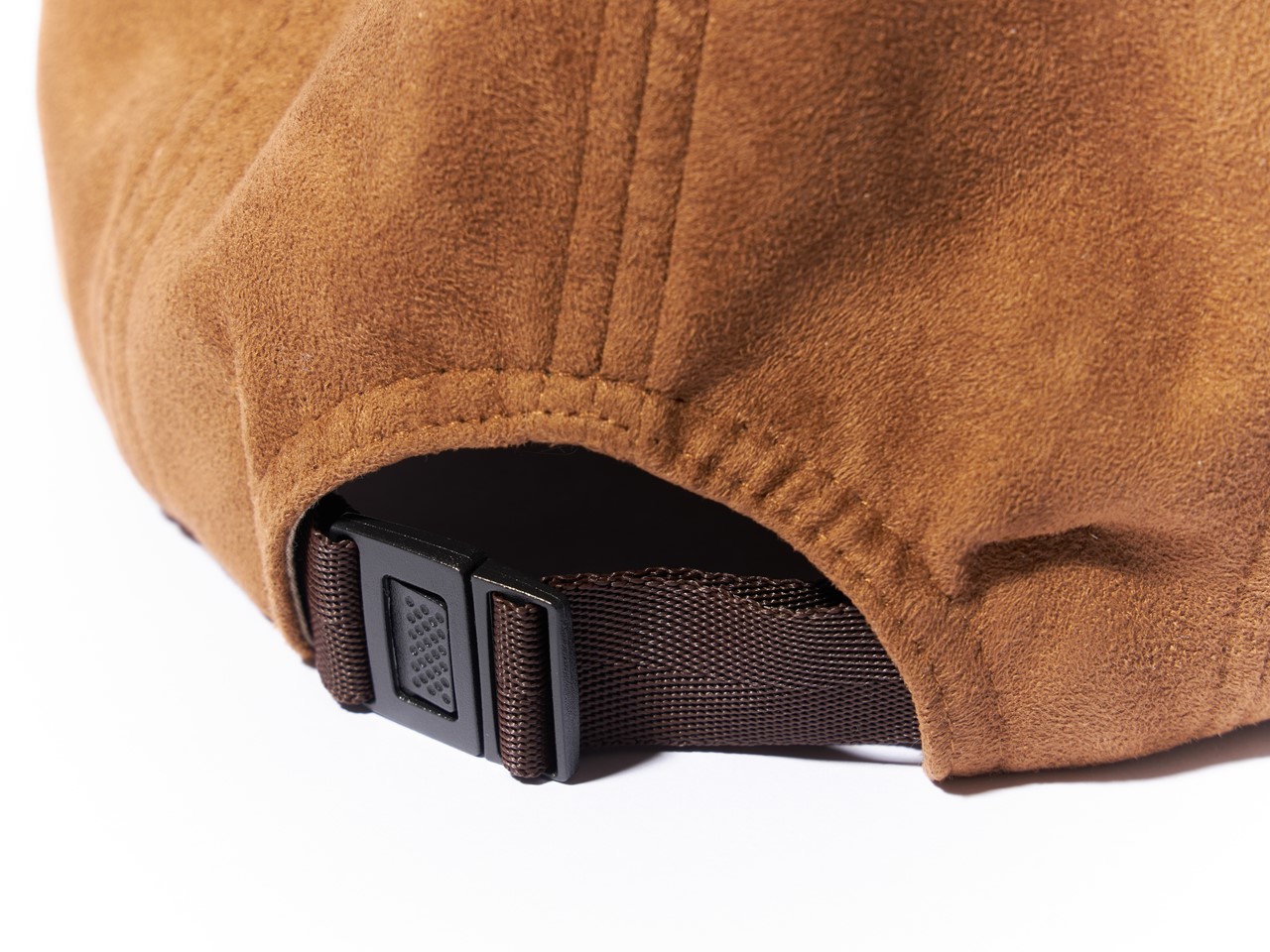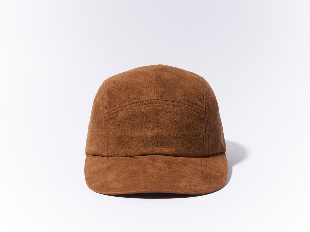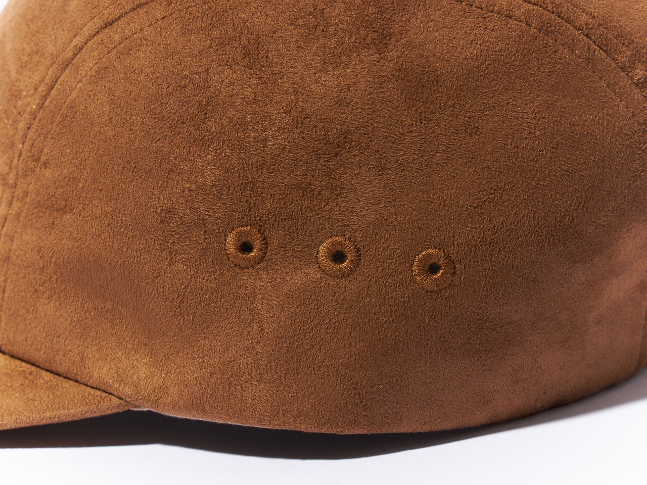 US古着でたまに見かけるスウェードやピッグスキンのキャップってカッコいい。帽子は本来日除けや雨対策のアイテムでもあるのに、水濡れに弱いレザー素材を組み合わせるという、そもそも本末転倒なデザインがむしろ古着好きの心をグッとつかむ。そこで本別注ではフェイクスウェードの生地を用いて、手洗い可能なスウェード調キャップを作ってしまおうという発想のもと、企画がスタート。ヴィンテージキャップに範を取り、5パネルとも言われる「ジェットキャップ」のスタイルを採用しようとしたところ、難題が持ち上がった……。