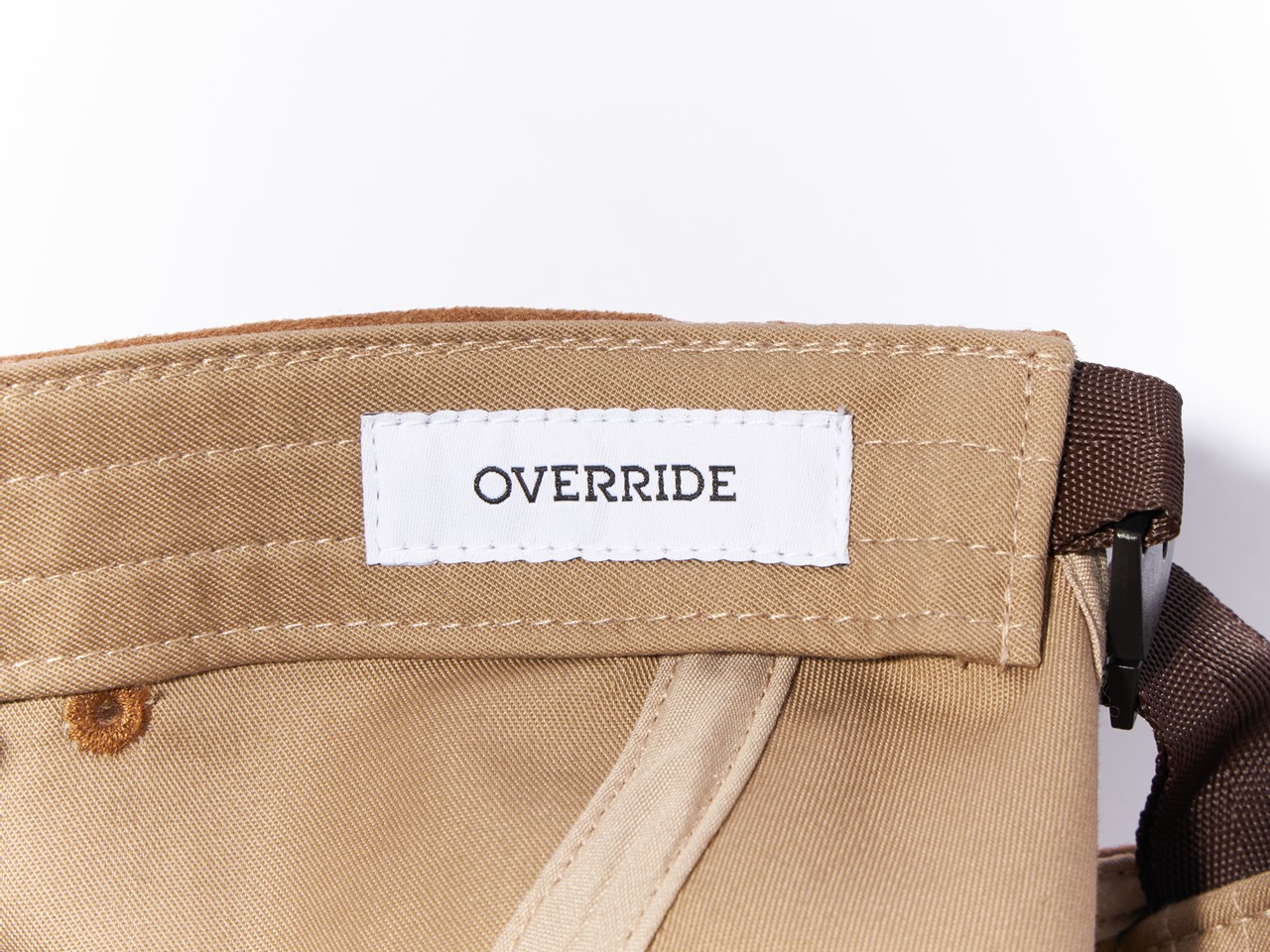 今回のタッグの相手であるOVERRIDEのネームも鎮座する。オリジナルブランドの制作・販売を行う帽子専業ブランドという側面に加え、国内外の数多くの帽子を取り扱う帽子専門店でもある。日本人の頭の形を熟知し、帽子業界のトレンドを牽引するリーディングブランド。