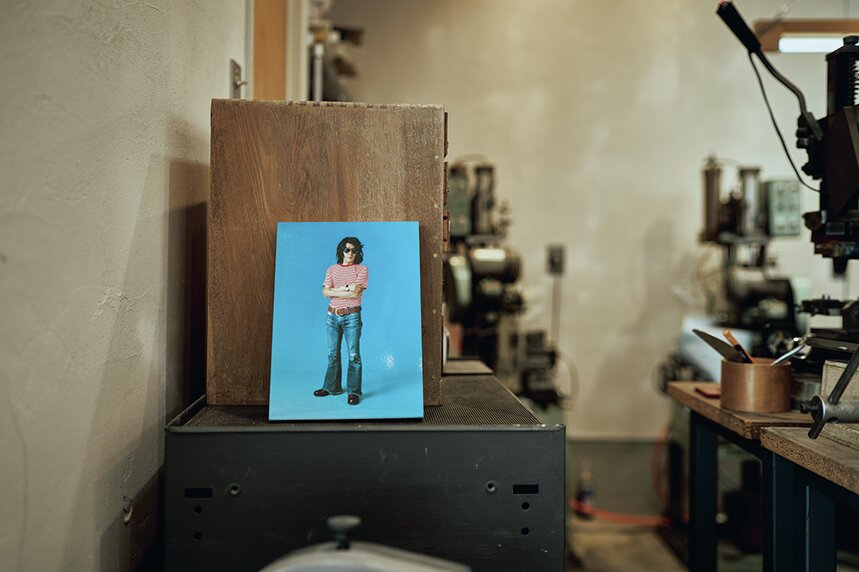 上木さんの着ている服や纏っている雰囲気は到底職人とは思えず、むしろファッションデザイナーの出で立ち。機械や作業風景を見るまでは、誰もここが工場だとは思わないだろう。