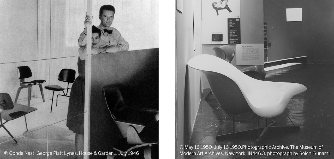 誕生したのは1948年、MoMAが開催した「International Competition for Low Cost Furniture Design(低価格家具の国際コンペティション)」。イームズ夫妻が初めて発表した成型プラスチック製の椅子は、アメリカのデザイナーが消費者のニーズに応えた最初の作品として大きな支持を獲得。以来、ハーマン・ミラー社のような企業が大量生産技術を進化させ、新しいデザインはたくさんの人の手に届くようになった。