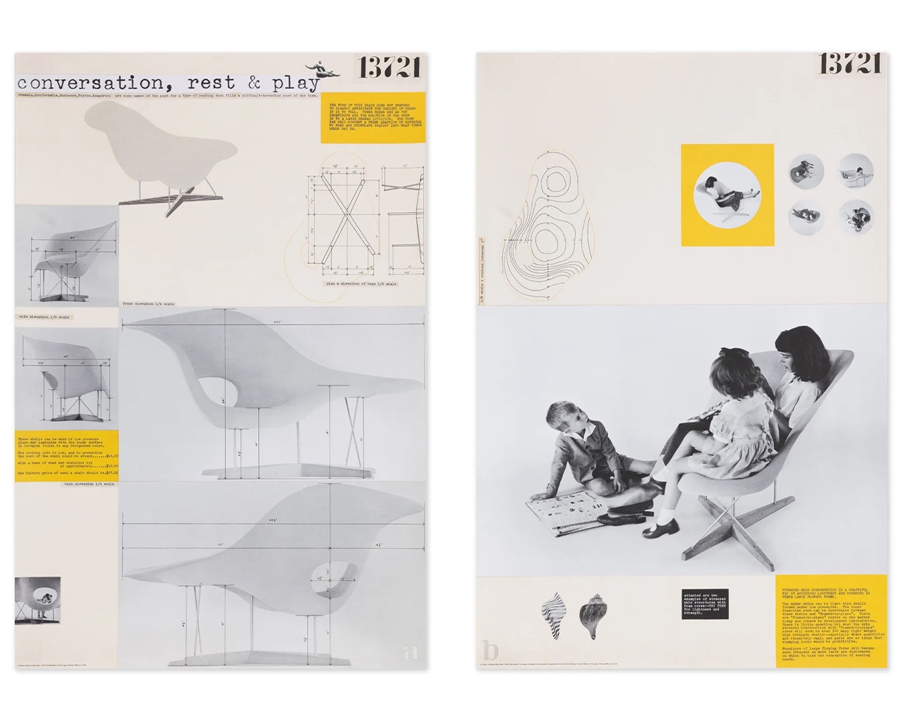 イームズ・オフィスは、チャールズ&レイ・イームズによる家具デザイン「ラ・シェーズ」の75周年を記念した、1948年にMoMAで開催されたコンペティション「International Competition for Low Cost Furniture Design」の応募パネルの原画を複製したポスター。750部の限定生産。