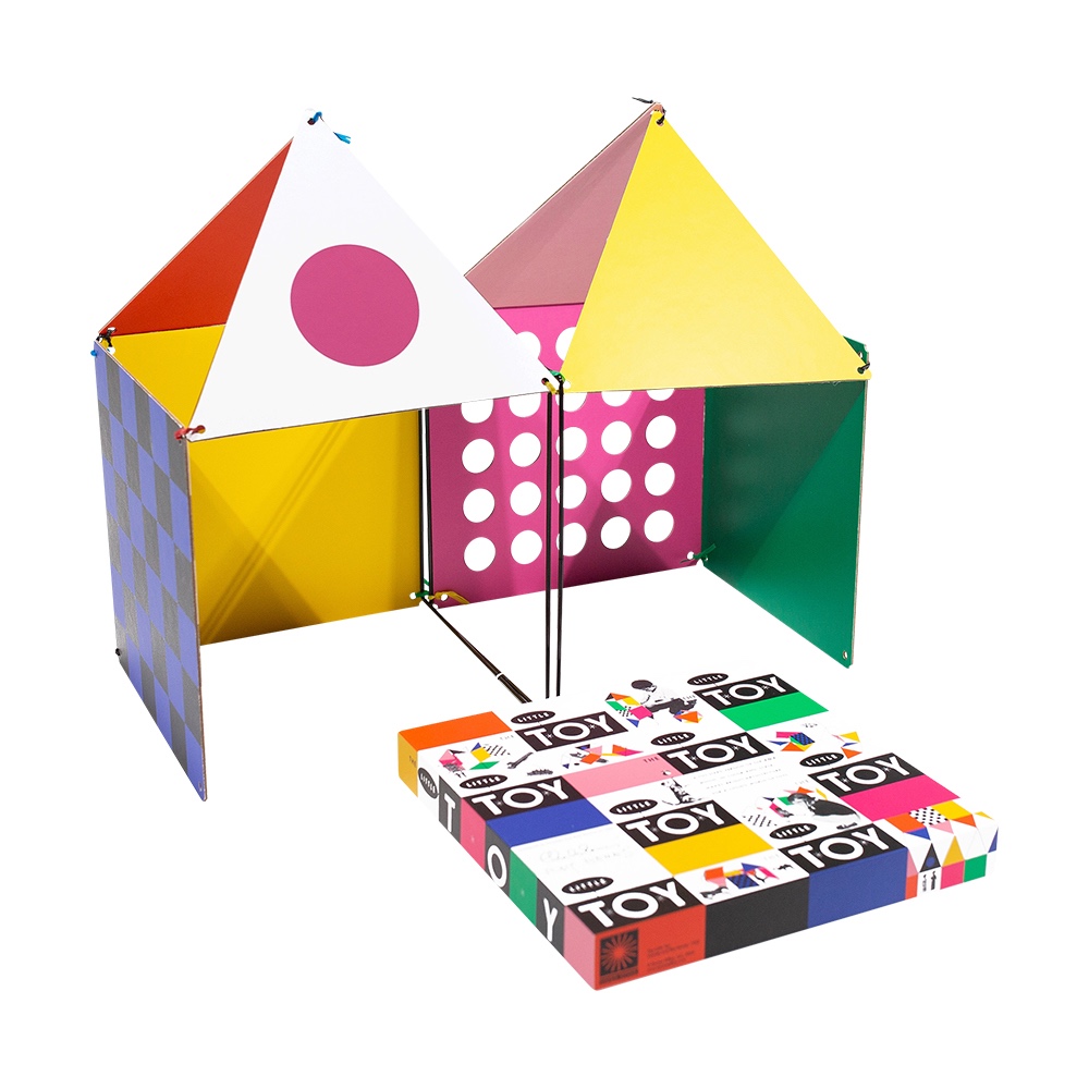 1952年にDIYが大好きな子供たちのために作られたトイキット。色鮮やかなパネルとワイヤーフレームを使って、おもちゃの家、ぶら下がる幾何学的なオブジェ、建築的なデスクトップ構造などを作ることができる。リトルトイはイームズの玩具の中でも最も希少で切望されている作品のひとつで、イームズ夫妻のプレハブ建築への関心と、すぐに手に入る既製品の素材を新しい思いがけない用途に適応させることへの情熱を反映している。