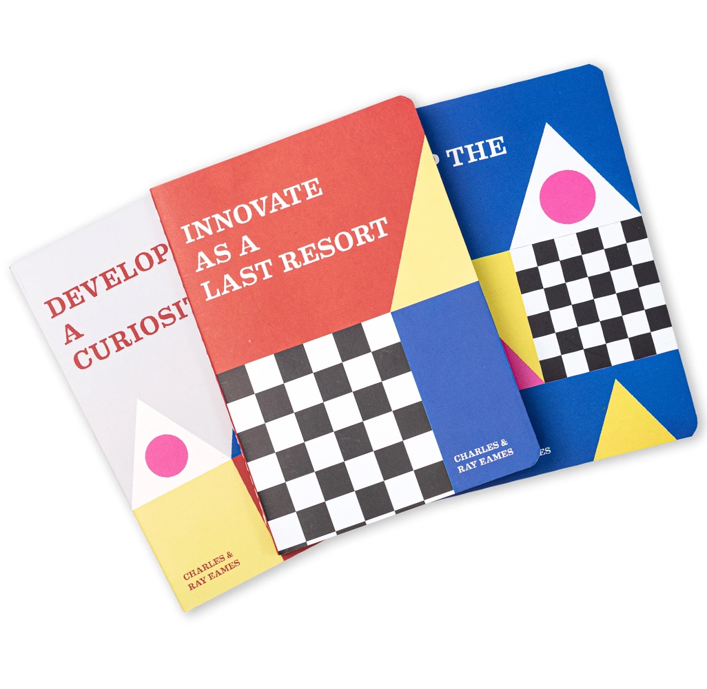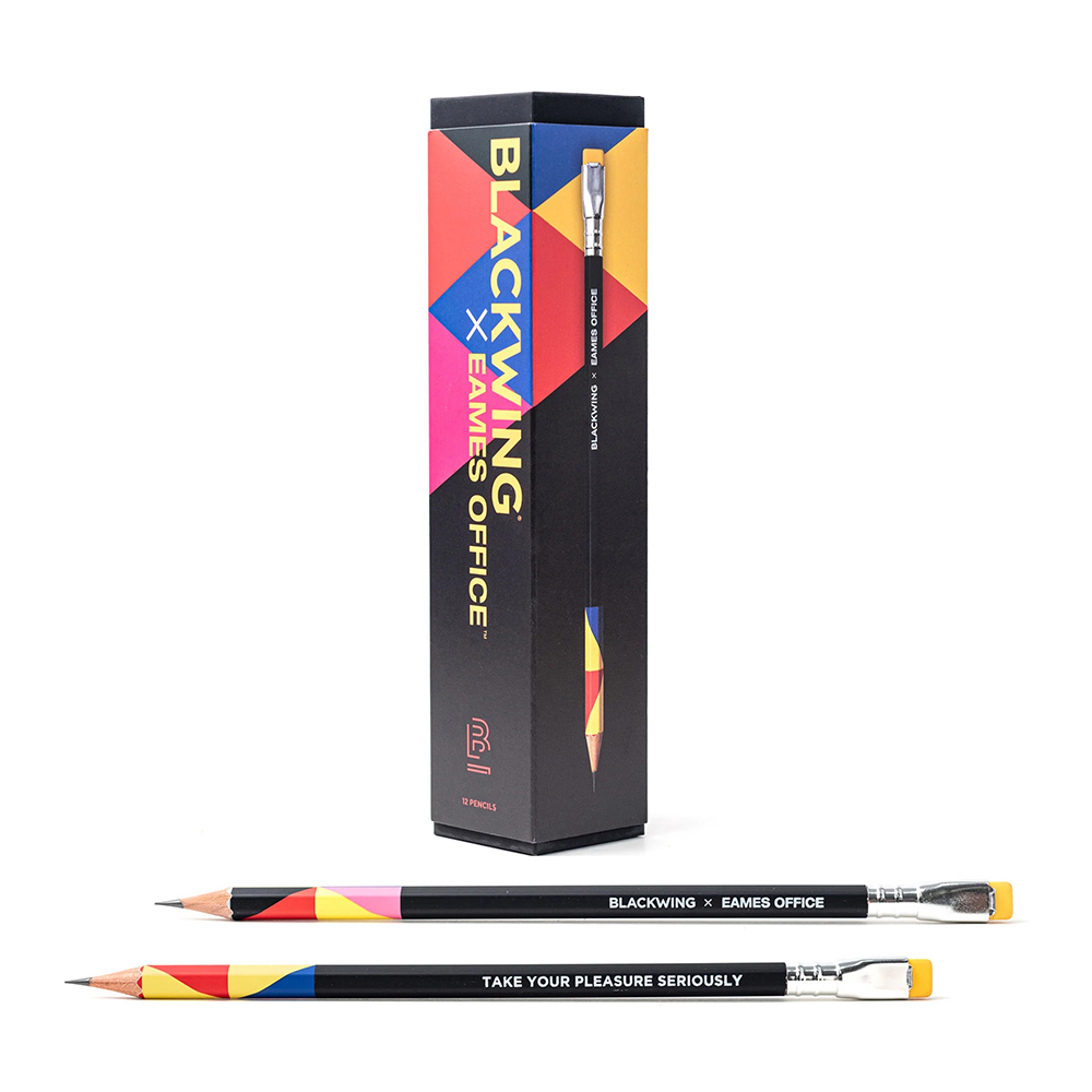 彼らも愛用したこのペンシルセットには、チャールズ&レイ・イームズ夫妻の名言があしらわれており、ふたりのデザイン哲学をうかがい知ることができる。