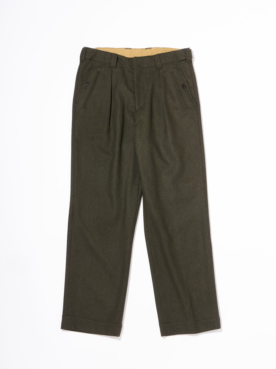 パピー高野、生田目がワンクッション、ハーフクッションで穿いていたのに対して、南は高身長のためジャストサイズのノークッションで着用。より美しいシルエットが際立つ。このように、ドレススタイルにも全く違和感のないスラックス然とした雰囲気にも関わらず実はミリタリーパンツ、というところが面白い。