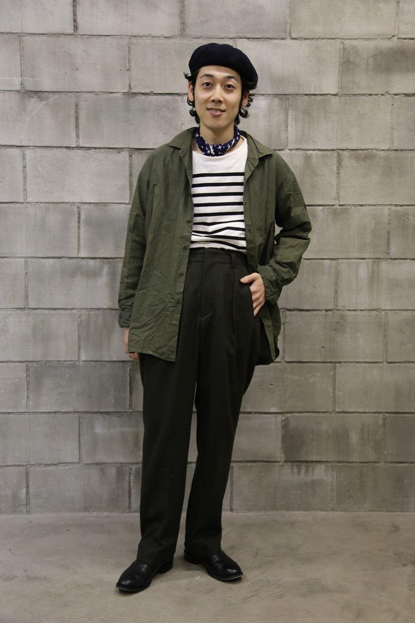 ヨーロッパスタイルを好むパピー高野は、元ネタのフレンチミリタリーパンツの世界観をストレートに解釈し、直球ユーロスタイルでコーディネイト。本アイテムに至っては、これこそが正統派な合わせと言える。スカーフやベレー帽、革靴など、上品なアイテムとの相性は言わずもがな。
