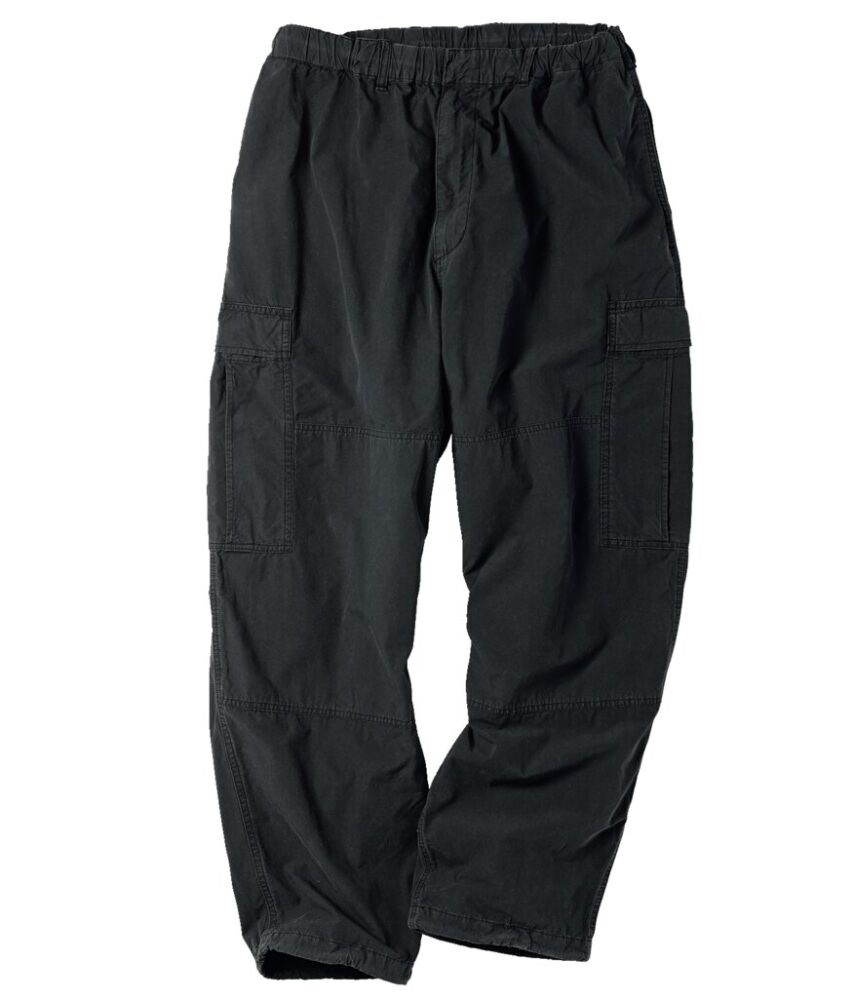 猿のお尻のようなバックの切り替えが特徴的なカーゴパンツは、程よい張り感のあるのウェザークロスを使用し、エイジング加工を施すことでヴィンテージ感のある佇まいに。内側のウエストドローコードや絞って履くことのできる裾の仕様など細かいディテールにも抜かりなし。2万7500円(東洋エンタープライズ03-3632-2321 https://www.toyo-enterprise.co.jp)