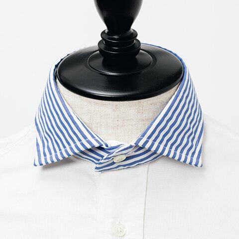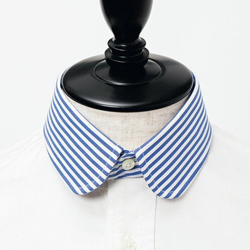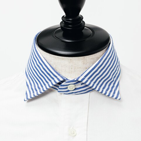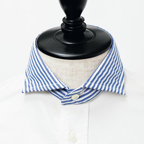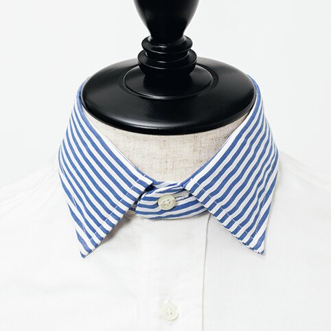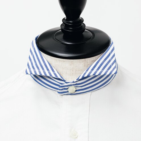 襟の先端部分を尖らせずに、丸みを持たせた襟型。柔らかい雰囲気を醸し出せるのが特長で、オーダーシャツでも人気あり。