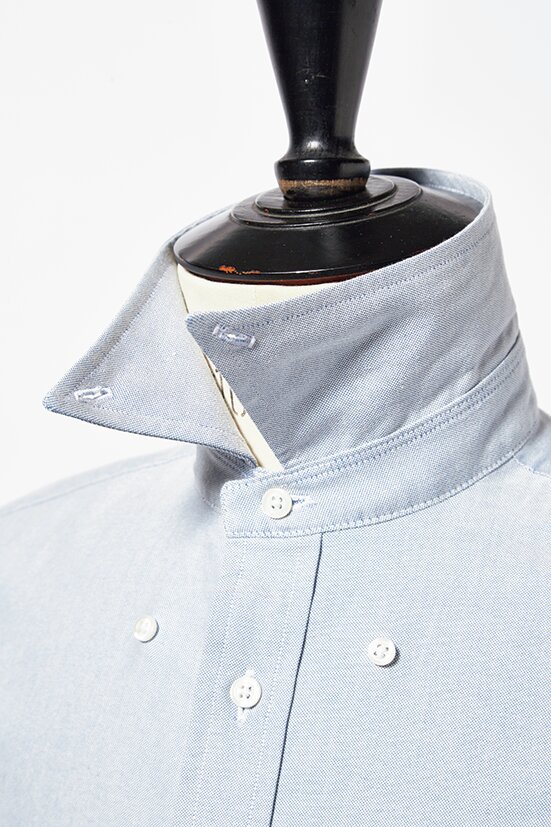 ボタンダウンシャツと言えば、こちら。前端を折り返した帯状のデザインが特徴。