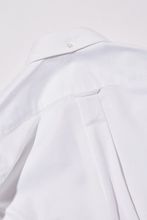 ボタンダウンシャツでお馴染み。背中の中央部分にボックス型のプリーツが走る。