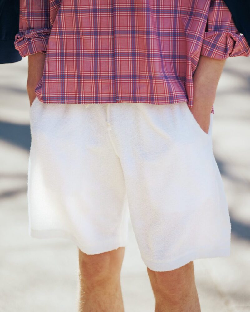 『TAKE IVY』をパラパラめくっていると、ホワイトのショーツを穿いているアイビーリーガーが度々登場する。爽やかでありながらトップスを引き立てる程よい存在感を放っている。そこで、その肌触りの良さから2ndスタッフ内にも熱烈なファンが複数名いる〈グッドオン〉のパイルショーツを「白で作りたい!」とすぐさま別注を依頼。インラインと同じ製品染めではなく、無染色を選択し、“真っ白”に仕上げてもらった。いざ穿いてみると改めてその履き心地の良さに気づくのと同時に、チェックシャツやデッキシューズなどのトラッドなアイテムとも良く合う。早くも夏が待ち遠しい。