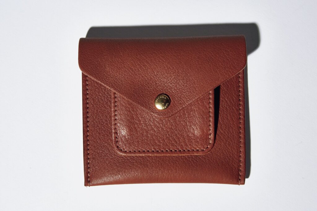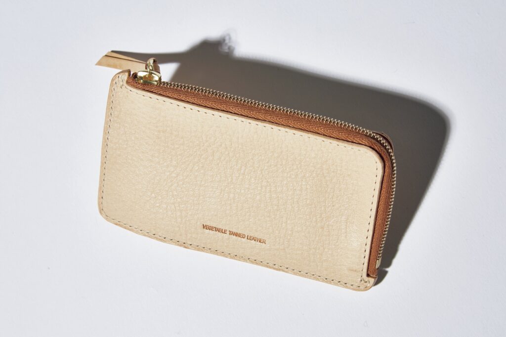 ほかの2商品と同じく、フルベジタブルタンニンレザーを使用。外側の小ぶりなポケットにはコインを、メインの収納部には折り畳んだ紙幣やカードを。シンプルだからこそ、北欧産らしいアジのあるレザーが映える。1万7600円