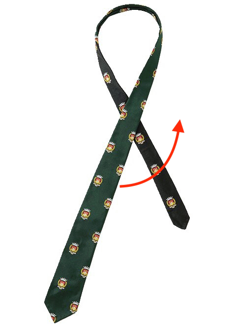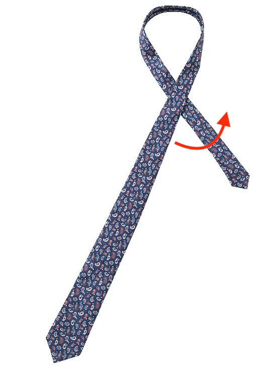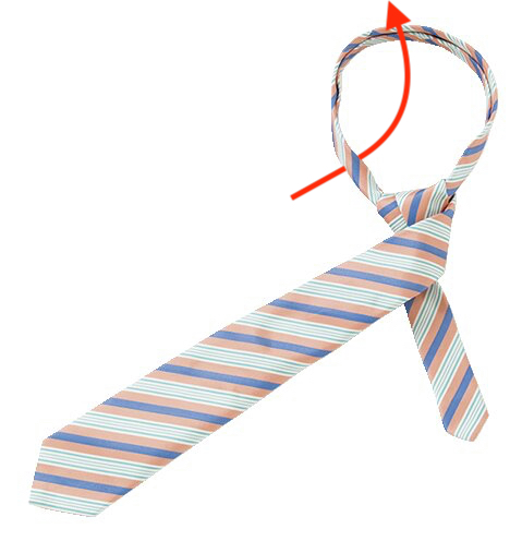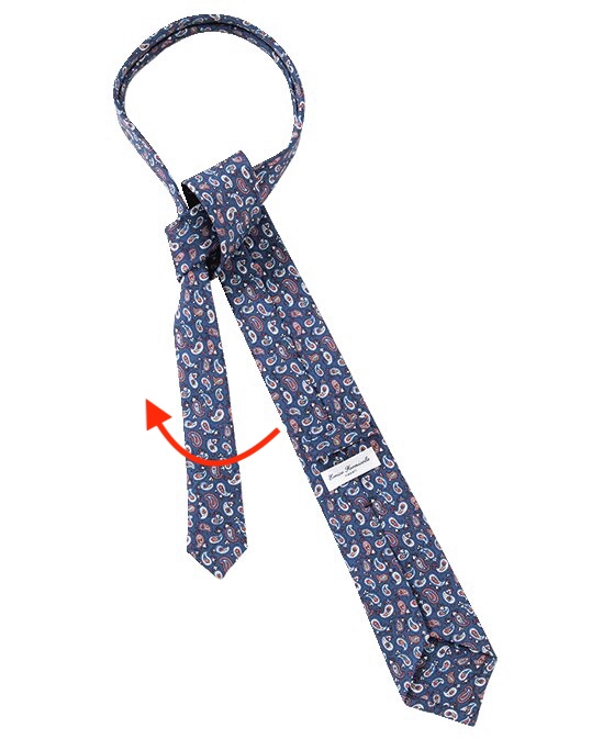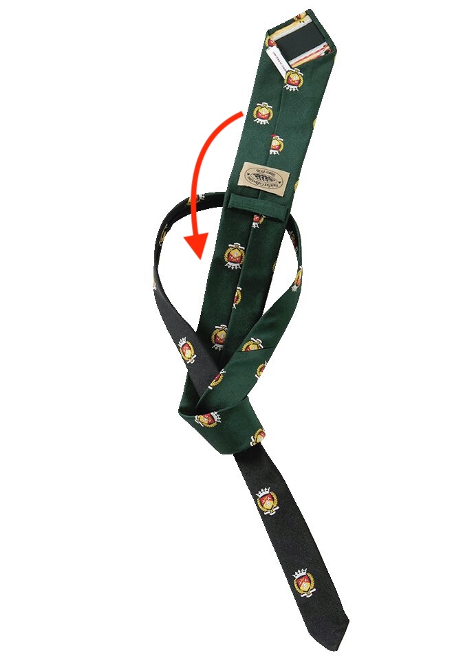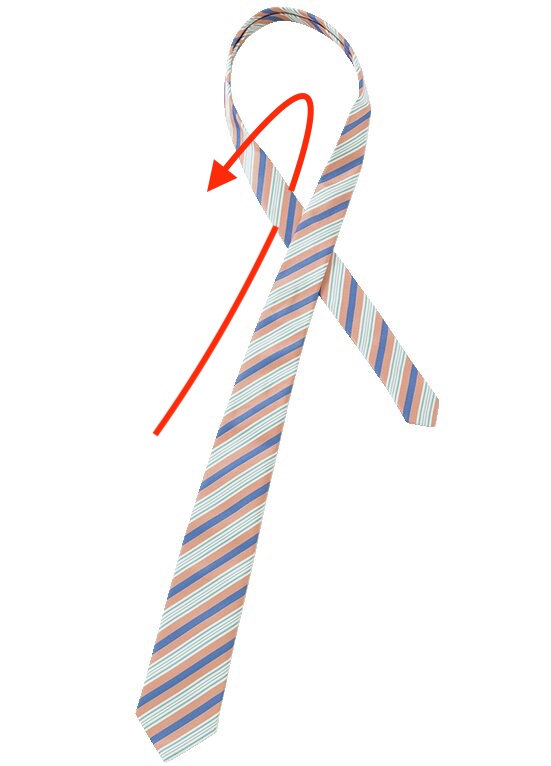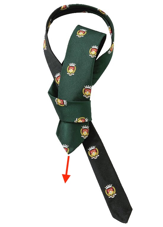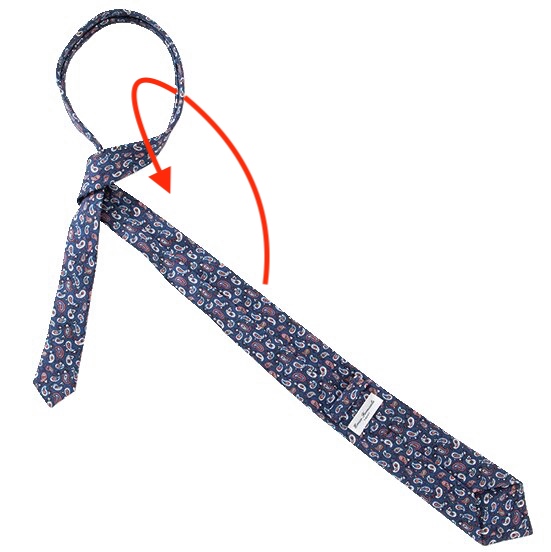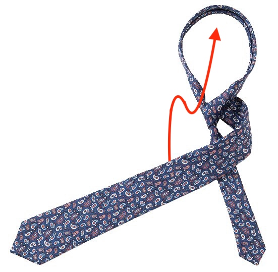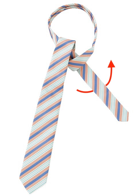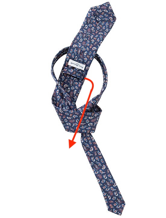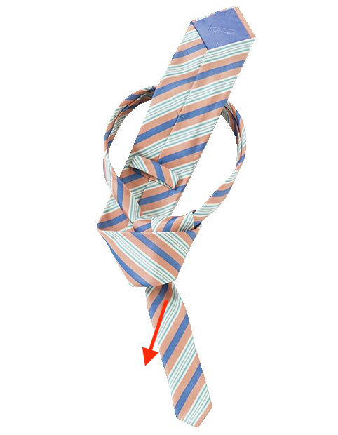 大剣を小剣の下に通したあと、首元のループに上から巻き付ける。この工程によりノットがやや大きくなる。