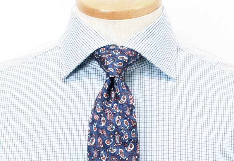 やや大きなノットに仕上がり、誠実な印象を与える。襟の開きが100~130度くらいのセミワイドや180度に近いワイドカラーと好相性。