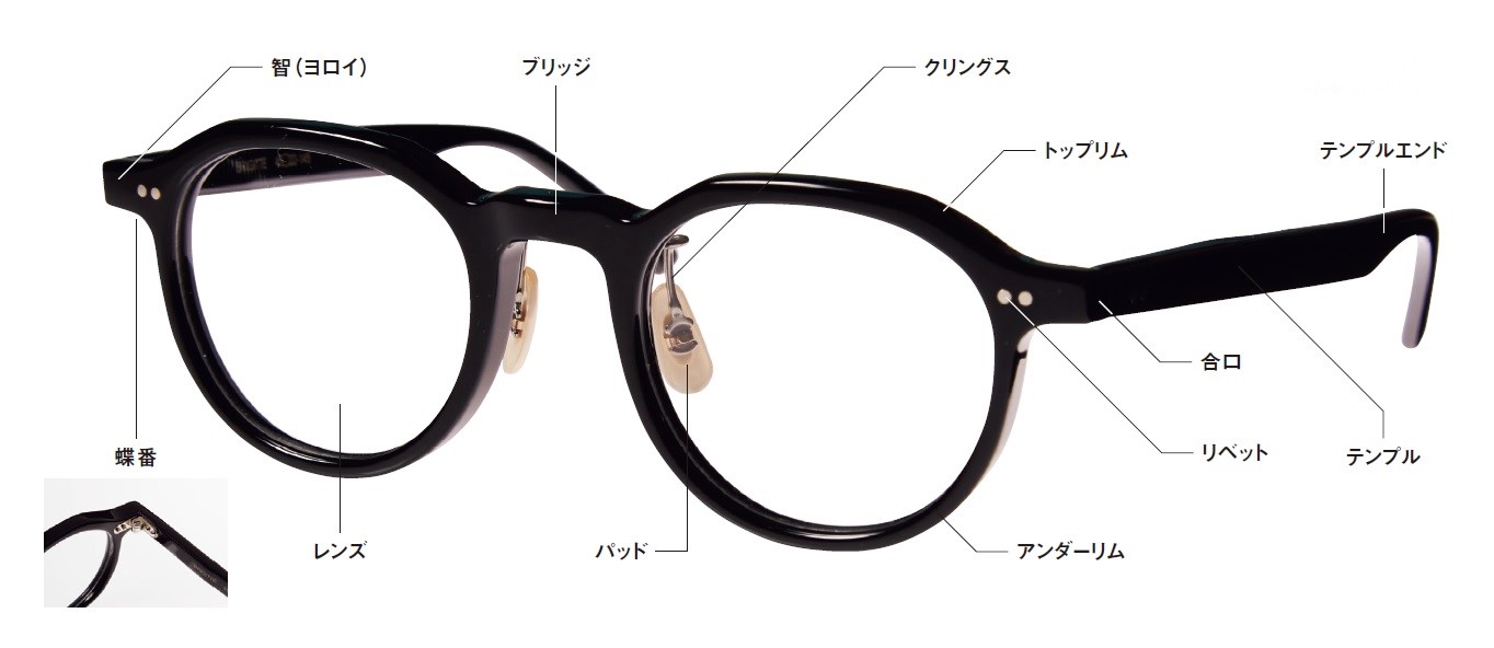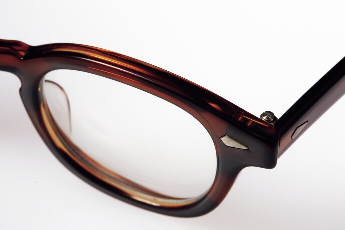アイウエアの素材としてセルロイドが多用されていた時代は、生地が硬かったため芯を入れる必要がなかった。