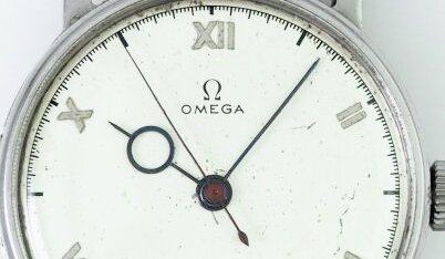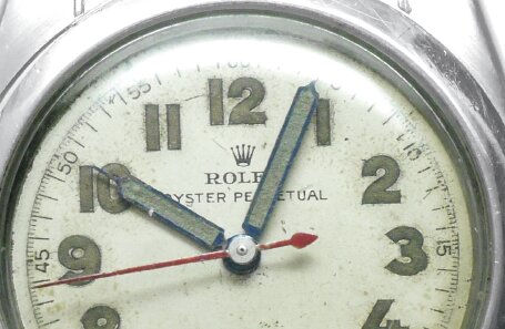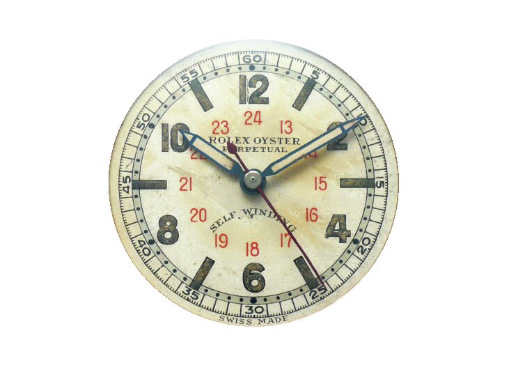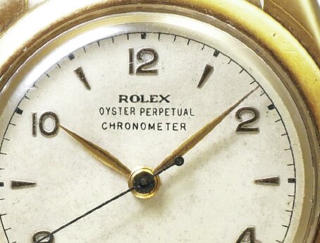 リューズを回すことによりゼンマイを巻き上げる仕様で、1930〜40年代ごろに散見。