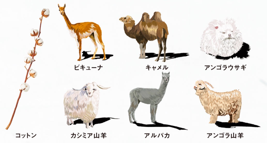 天然に産出する繊維。綿や麻などの植物繊維と、絹や羊毛、獣毛などの動物繊維に大別される。また、綿や羊毛とひと口に言っても、その中には様々な品種が存在する。海島綿やメリノウールなど、なかでもランクの高いものもある。獣毛にも下記に挙げているように毛を刈り取る動物によって種類が異なる。特にビキューナは「神の繊維」とまで称される。