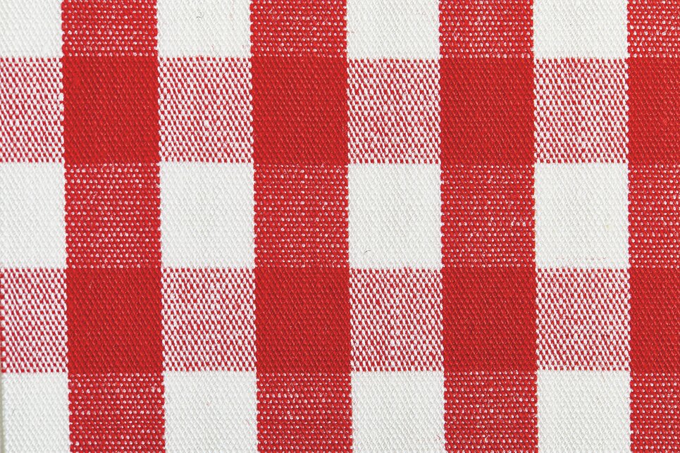 先染めの色糸と晒し糸(白い糸)など異なる色の染め糸を使って縦縞か格子状に織った平織物。一般的に、この格子柄をギンガムチェックという。