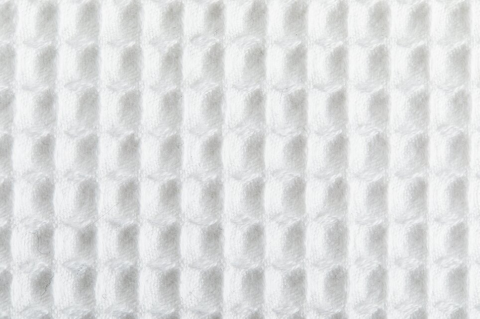 お菓子のワッフルの表面のように、表面にマス目状の凹凸のある織物。柔らかく、吸水性に優れているため下着に使われることが多い。