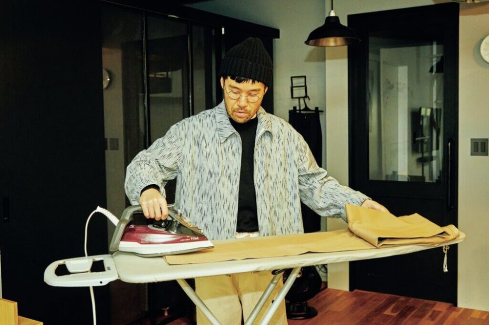 意外と面倒で手が回らないパンツのメインテナンス。特に綺麗に穿きたいチノパンとスラックスについては、着用前に毎日アイロンがけをしているという安武さんを見習わなければならない。