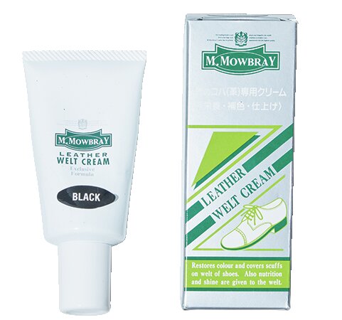 着用を重ねることでコバ部分が削れたり傷が入ってしまうのは、革靴好きであれば1度は感じたことのある悩み。安武さんは定期的にコバ専用クリームを塗ってケアしているのだという。「レザーと同色のクリームを塗ることで削れが目立たなくなりますし、栄養も含まれているのでケアにも繋がります」1320円(ビームスF TEL03-3470-3946)