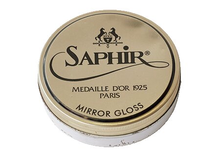 ブラッシング後、鏡面させるためのワックスを指で塗っていく。さりげなく光らせることを意識し、トゥとヒールを中心に薄く広げるイメージ。ワックスも「アナトミカ パリ」と同様にサフィールのものを使用(本人私物)