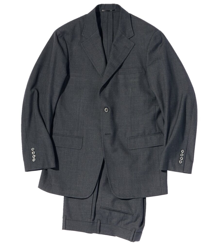 アメトラベースのブランドながらゴリゴリのスーツ畑で研鑽を積んだデザイナー石原さんが作るジャケットに、勝手ながら絶大な信頼を寄せてます。お世辞にも映えるとは言えないこのグレースーツはその名も[ファーストスーツ]。アイビーとは違う、アメリカンなムードを感じました。正統スーツを通ってこなかった自分はここからやり直します。11万円(ステイ オア ゴーTEL03-6447-5095)
