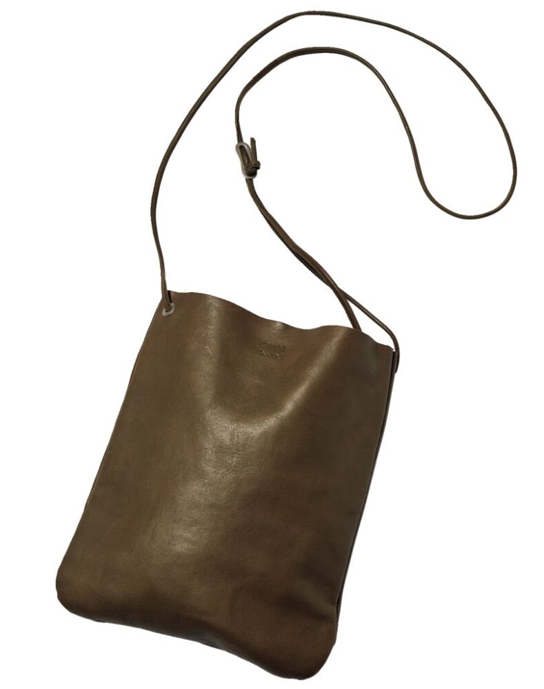 休日や電車移動の日のために、両手が空くミニバッグを探したところで出会ったのが老舗タンナーのホースレザーを使用したこのレザーショルダーバッグ。重厚感のある佇まいなので、クラシックなアイテムとマッチするし、武骨なオリーブカラーも素材がレザーになると、とても上品。ありそうでなかったプロダクトに即買いでした! 1万5400円(エバーグリーンワークスTEL03-5797-2335)