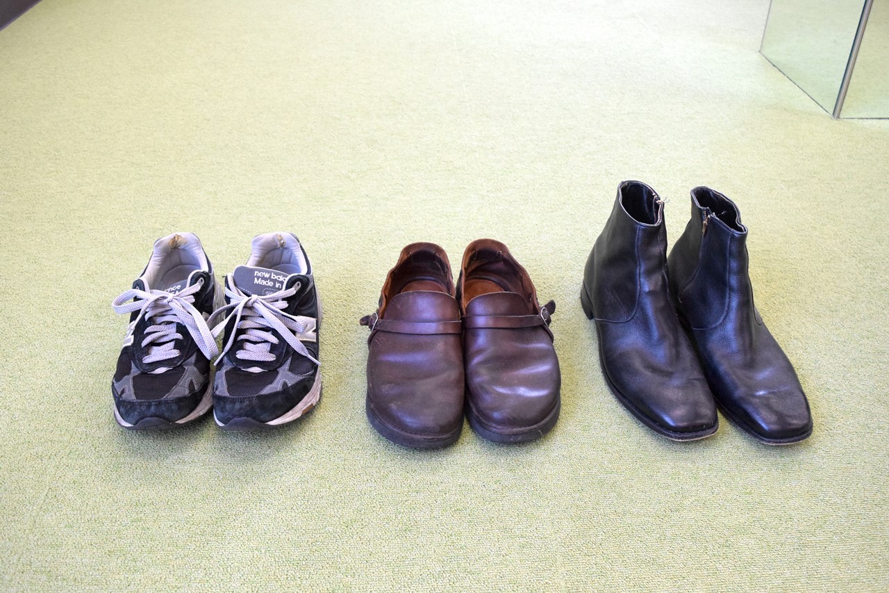 今回、持ち込んだのはいわゆる短靴ではなくスニーカー「ニューバランス993」、オーロラシューズ、ジップブーツ「シアーズのヴィンテージブーツ」という本当にカスタムできるのか少し不安な3足。ヴィブラムソールの凄さを目の当たりにし、気持ちの高まりはそのまま、カスタムをお願いした。