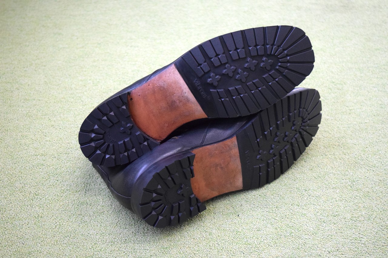「シアーズ」のヴィンテージブーツは「ヴィブラムソール」らしい「タンク」とも呼ばれているソールにカスタム。元々、踵以外はレザーソールだったものを両方ゴムソールに変更。ボリュームのあるソールはエレガンスさを向上。ヴィンテージにありがちな履き心地の悪さも解消された。