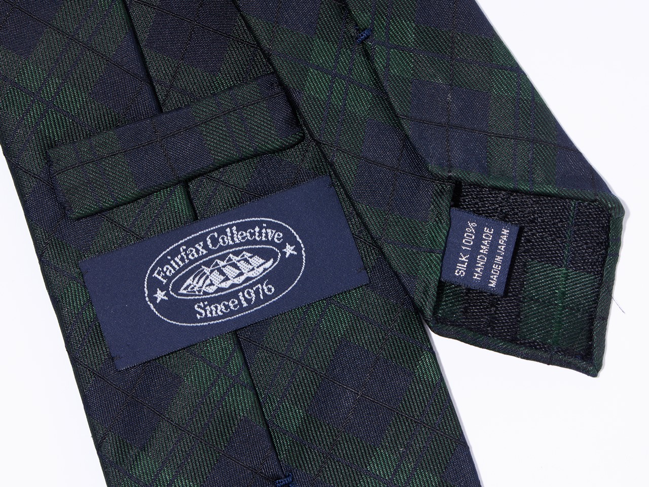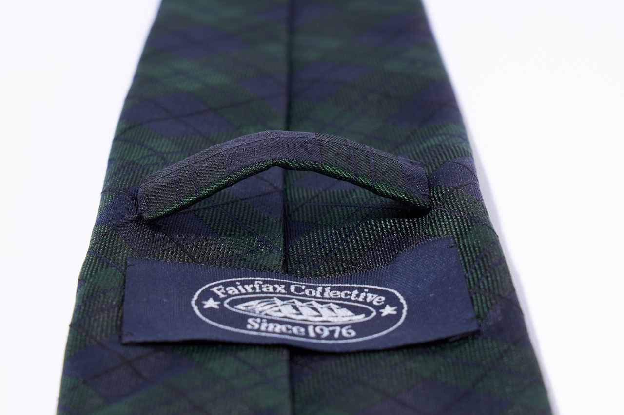 小剣から大剣にかけてのなだらかな「くびれ」によって、ノットは小さく結ぶことができ、一方、大剣・小剣はともにインラインよりも5mmだけワイド。前回同様、国内ではわずかひとりの職人でしか作りえないと言われる絶滅危惧テクニック、「超極細の三つ巻」です。熱処理を行わない「未整理」のシルクの光沢感、そして裏地を使わない軽やかさは、胸元の動きや揺らぎを演出。袋状のループや、本カンヌキといった見えない箇所にまで、美意識を詰め込んだネクタイを、他で見つけることは難しいのではないでしょうか? 他ならぬネクタイ専業メーカーのFairfaxとの協業だからこそ成しえた職人芸と、定番柄にして本格ネクタイでは見かけないブラックウォッチ。類稀なるクラフツマンシップと、定番からのわずかな逸脱が邂逅して生み出されたネクタイで、新生活、あるいはマンネリ化した紺ブレの首元を彩ってはいかがでしょうか?
