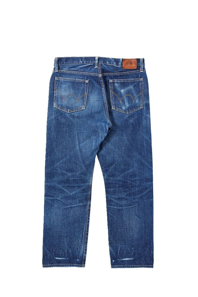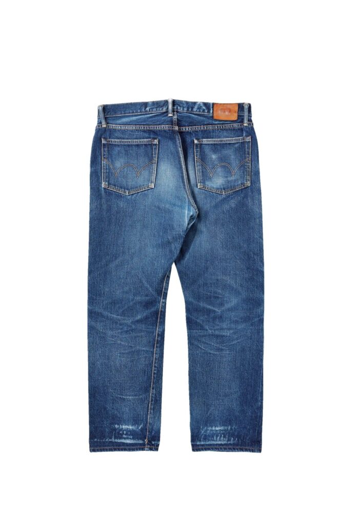 EDWINコンセプトショップの定番ジーンズ[EDS]をベースに、防縮加工などを排した昔ながらの生機(きばた)デニムで仕上げた限定アイテム。自らウォッシュを施すことで生まれる、生地の凹凸や捻れは穿き込むことでヴィンテージのような雄々しい経年変化が楽しめる。※こちらは2年着用したエイジングサンプル。2万2000円