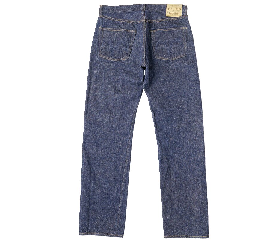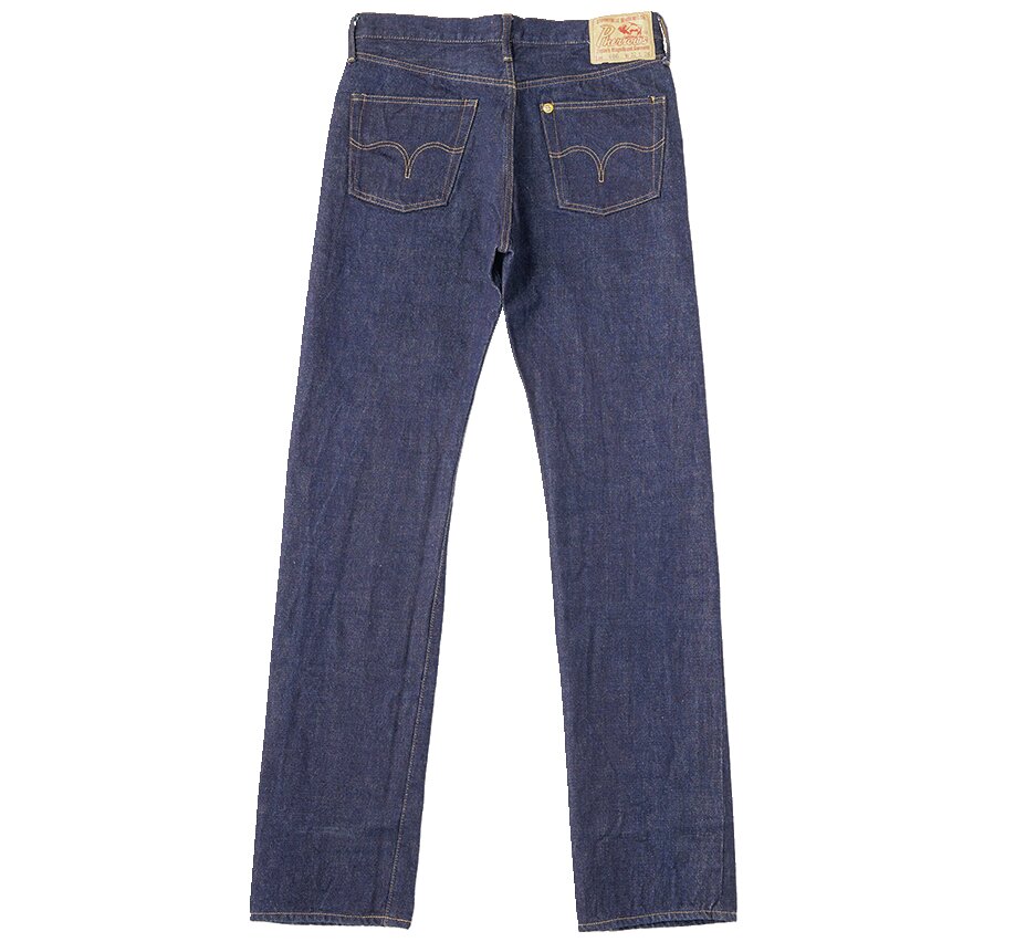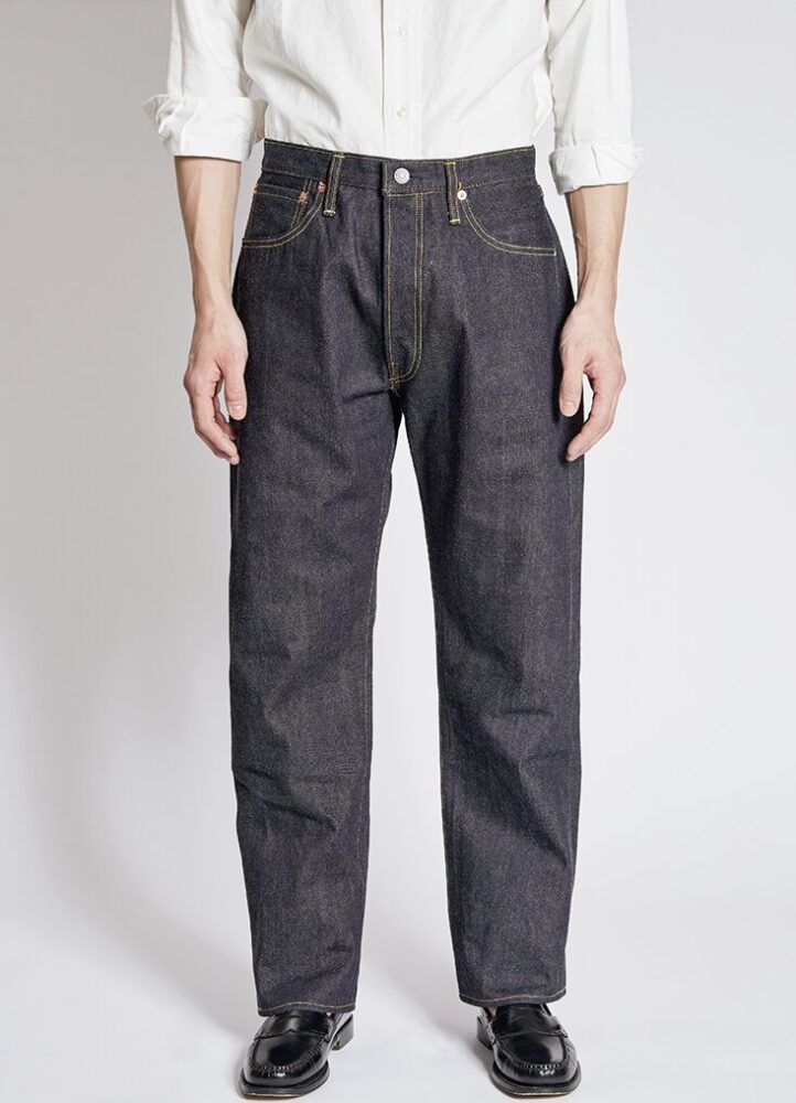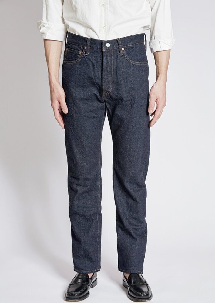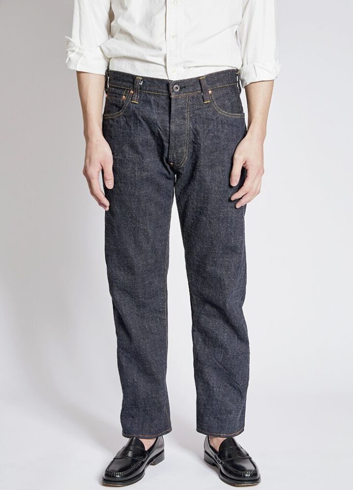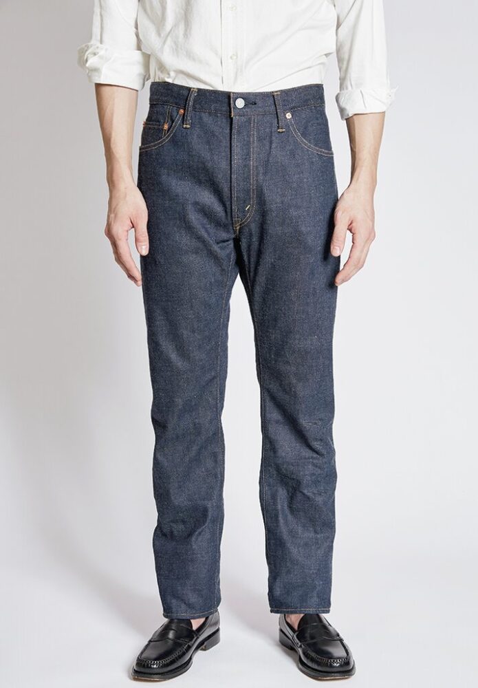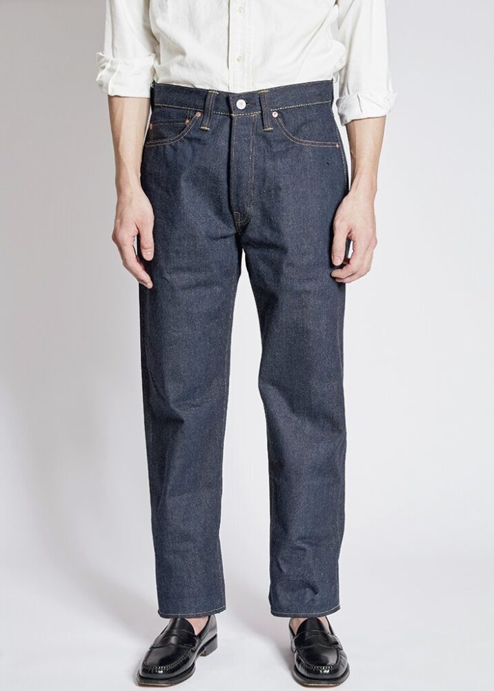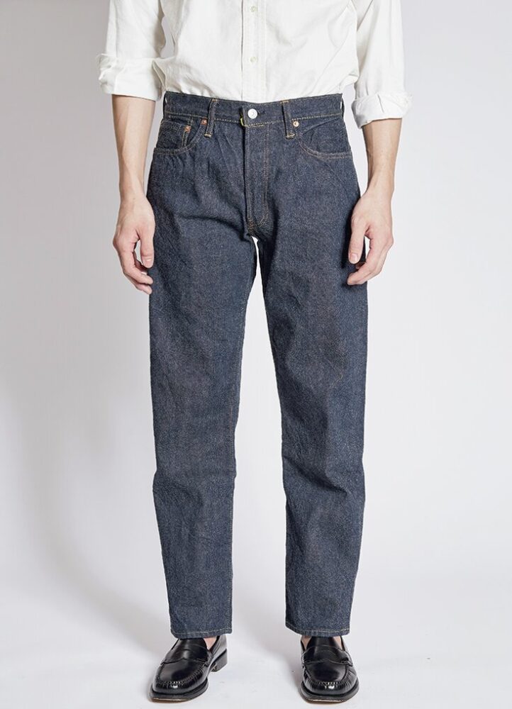50年代の5ポケットを再現。締まったウエストから裾にかけて弧を描くように伸びるテーパードラインは当時の王道シルエット。14.5オンスの生地には端番手という不均一な糸を使用。3万5200円(ザ・リアルマッコイズ東京TEL03-6427-4300)