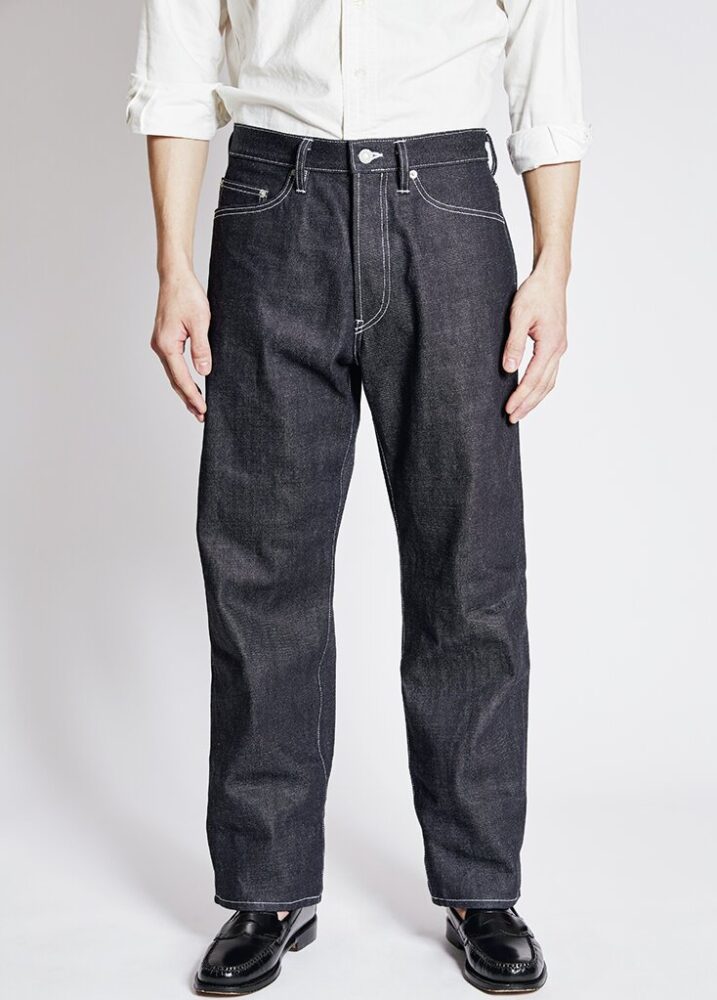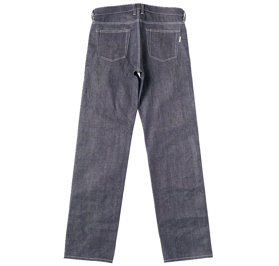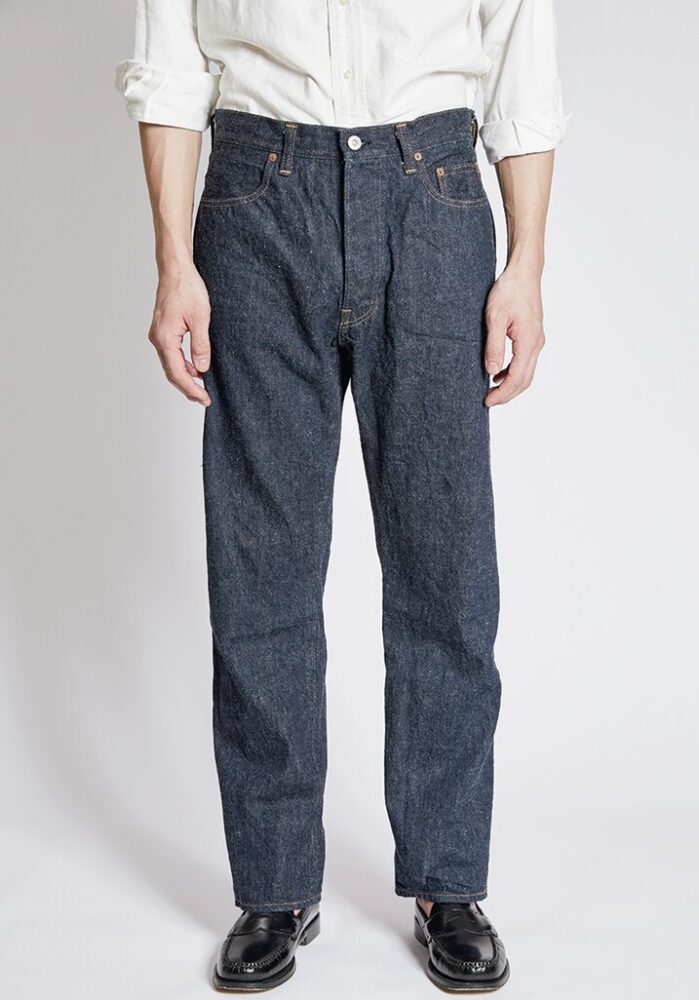 24年春夏の新型。経に米綿とオーストラリア綿をブレンドした7番手のムラ糸、緯に6番手のストレート糸を使った赤耳デニム。太ももから裾にかけて、ほぼ垂直直下のすっきりストレート。2万6400円(マスターピースショールームTEL03-6407-0117)