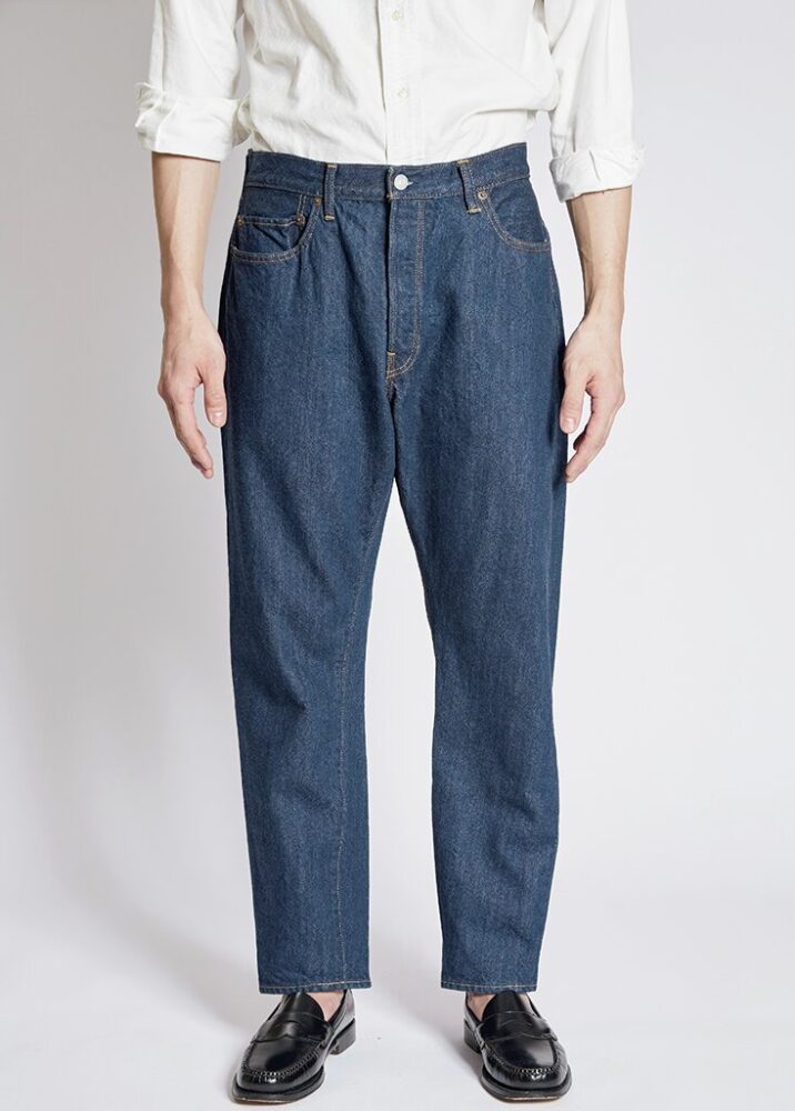 ストレートデニムが24春夏にフルリニューアル。生地は糊抜き、防縮、斜行止め、毛焼きなどをしていない生機に変更。シルエットは全体のバランスを70年代のヴィンテージに近づけた。2万9700円(シオタ customerservice@ciota.jp)