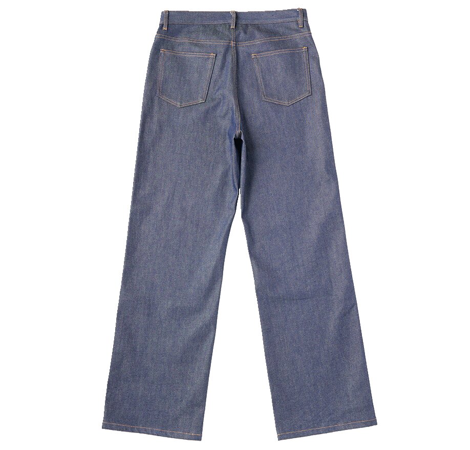 岡山県産の12オンスデニム生地は、オーガニックコットンを使用し、しなやかで肌触りの良い素材感。同系色のステッチやスラッシュポケットが、5ポケット型には無いすっきりとした印象。3万800円(ヘムト PR TEL03-6721-0882)