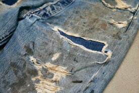 前置きはほどほどに、洋服を永く愛用するというテーマの中でも今回フォーカスするデニムは、時代を超えて愛され、着用者のライフスタイルが如実に現れる特別なアイテムだ。ワークウエアを出自とする生地のタフさはもちろん、独特な色落ち、ヒゲやハチノスなどのアタリといった着用を重ねるごとに刻まれていく“しるし”もその魅力。もはや「着用者」と「洋服」といった淡白な関係では片付けられないアイテムだ。そんなデニムの破れた箇所を修繕したり、メインテナンスを加えることは、その1本のデニムと本当の意味で向き合うことでもある。
