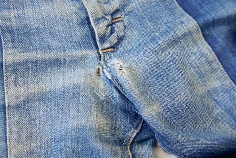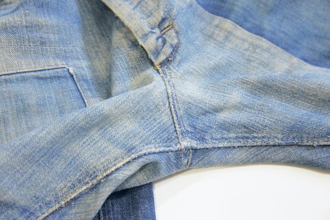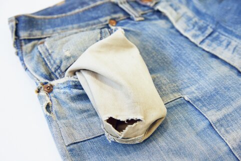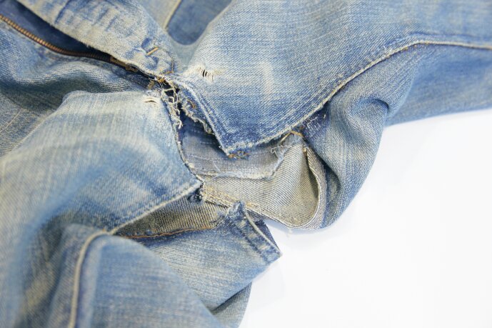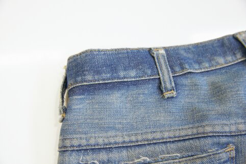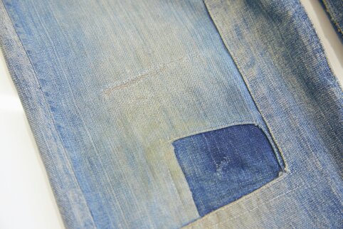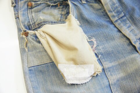 ミナミ こちらがリペアをお願いしたいデニムです! 大学に通っていた5年前に購入した60年代のヴィンテージデニムなのですが、膝やヒップ、ポケットが破れていて困っています・・・。