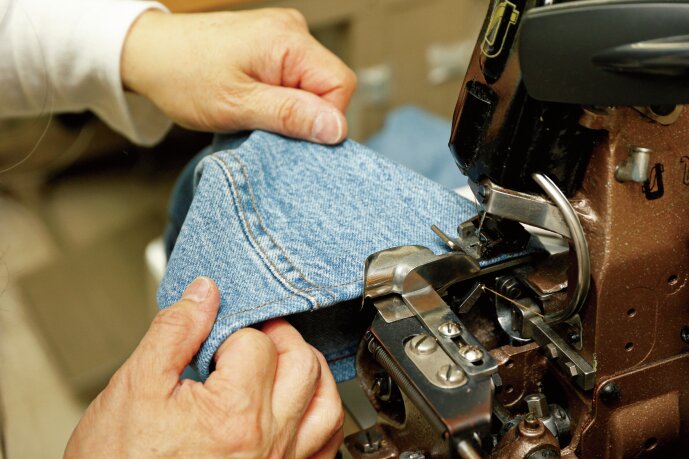 「リーバイス」のアメリカ工場で使用されていた「ユニオンスペシャル」や約1000色のミシン糸を揃えた裾上げ専門の優良店。