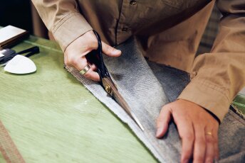 着用時のイメージを元にカットする幅を採寸する。