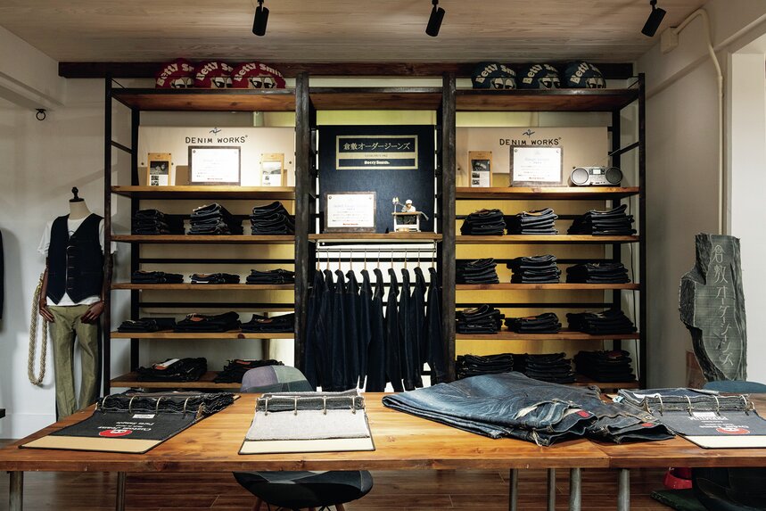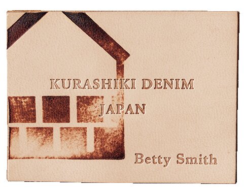 パッチはジーンズの名刺代わり的存在。豊富なカラーのレザーパッチのほかにも、布のパッチも選択可能。本サロンでは、倉敷の名が入るデザイン(下)のタイプが人気なのだとか。