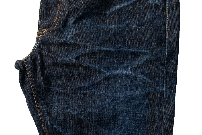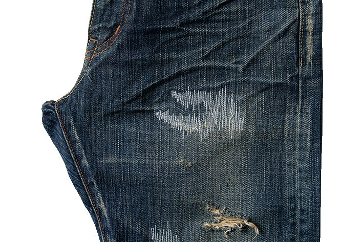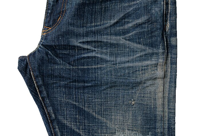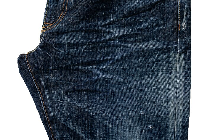 穿きこんだ年数を想定した経年加工は5種類をラインナップ。年数に応じて色の濃淡や生地の破れ加工が強く出る。このほかにもブリーチ加工やストーンウォッシュもあり。