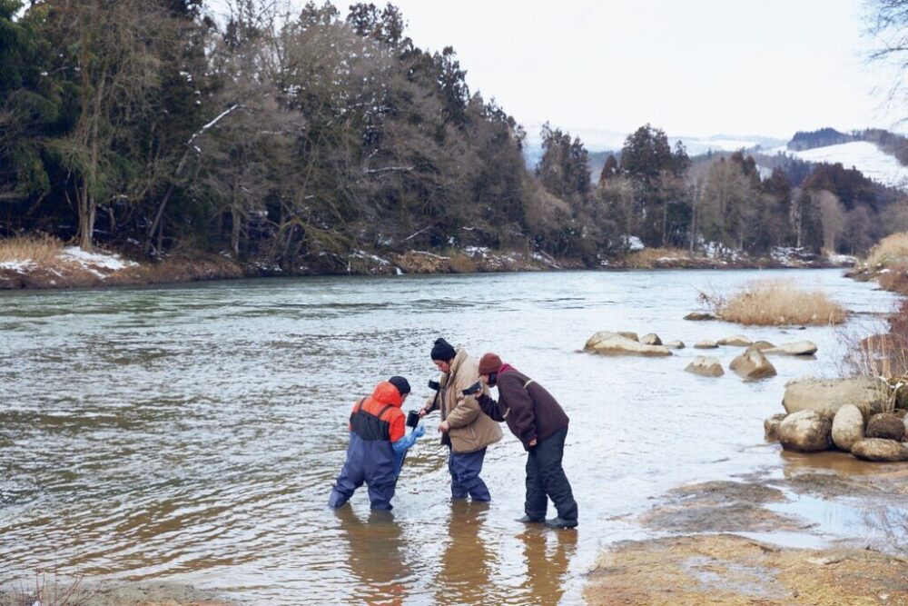 昼になり、ご当地オススメ昼飯情報及び飛脚小判の新たなる資料を探すために、白鷹町役場へ向かった。無許可隠密行動中の我々は、小判捜索を悟られてはならない。所沢ナンバーのアタシ達はただでさえ目立っている。隊員に「目立つような行動は控えろ」と厳命せしも、いきなりウェーダーを着たままのゴーイチ隊員が「ちょっ、もう限界なんで、ウンコしてきます!」と、走って役場の中へ行ってしまった。「おい! せめてウェーダーは脱げ! こんな厳寒期に川に入るヤツいねえだろ!」。