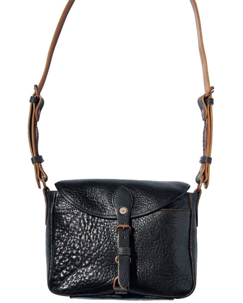 こちらは、そんな同ブランドが新たに採用した「グロッシーブル」のショルダーバッグ。荒々しいシボの迫力を残しつつ、これまでにはない、しなやかさと滑らかな手触りを実現した。背中側のオープンポケット、ワンタッチで開閉するフラップなど、フラップバッグにありがちな面倒な点も解消。革の魅力はそのままに、使いやすさを追求した逸品が完成した。4万9500円(キンギョセイホウTEL06-7171-8411)